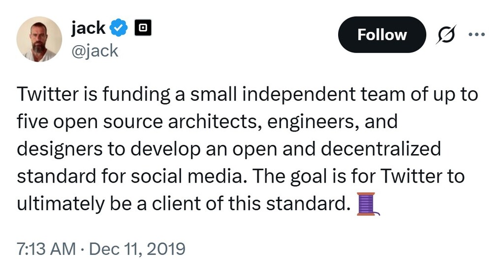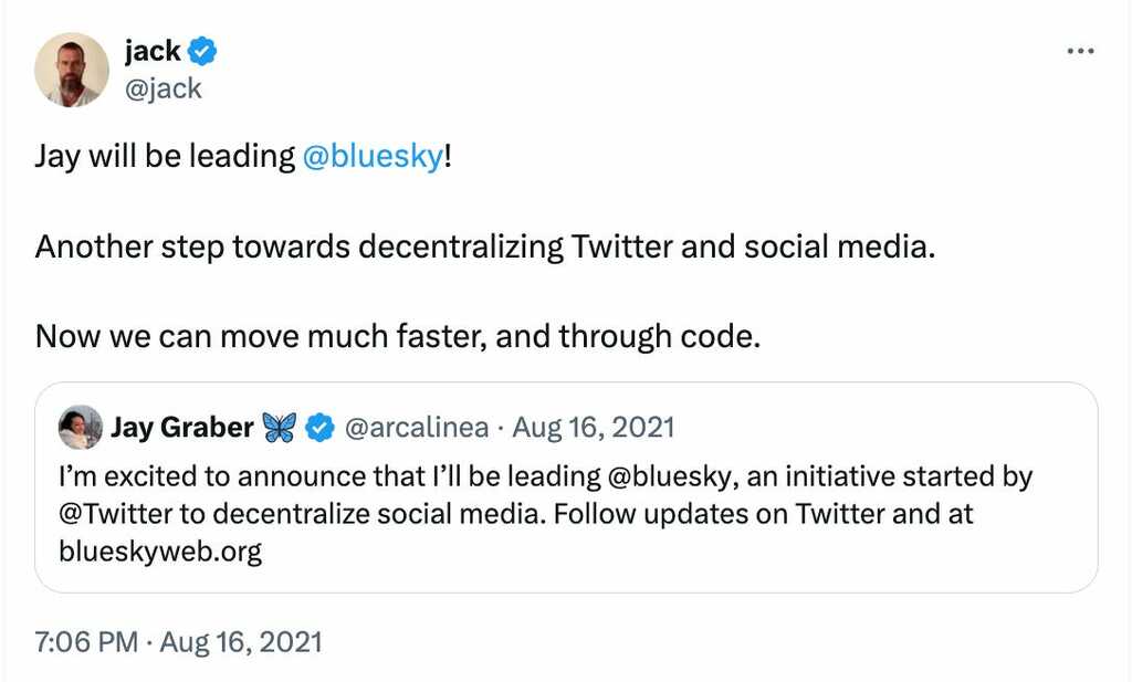 Jack Dorsey (CEO of Twitter) announces Bluesky project in a Twitter post